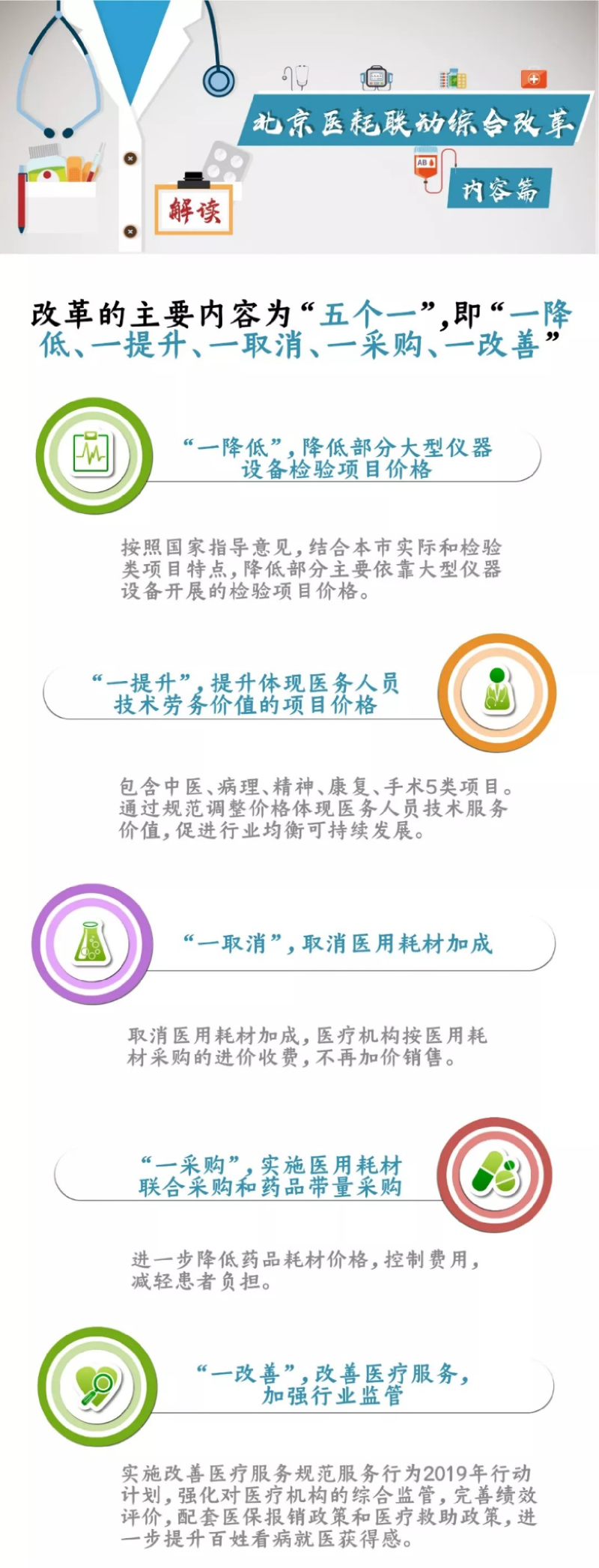 北京市卫生健康委党委书记、主任雷海潮介绍,此次改革是在医药分开综合改革基础上,取消医用耗材加成,开展国家药品集中采购试点,实行京津冀医用耗材联合采购,规范调整医疗服务项目价格,积极改善医疗服务,更好地促进人民群众健康。